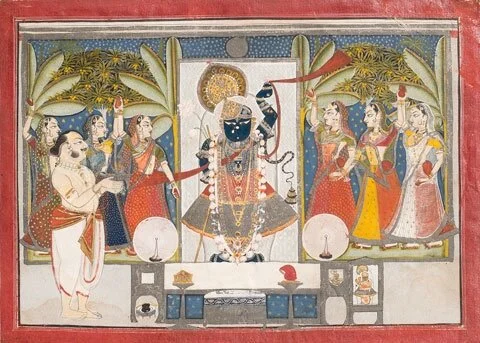 Dauji II Performing Aarti on Sharada Purnima, First quarter of the 19th century. Nathdwara, Rajasthan, India. Amit Ambalal Collection. Picture courtesy of The Art Institute of Chicago.
